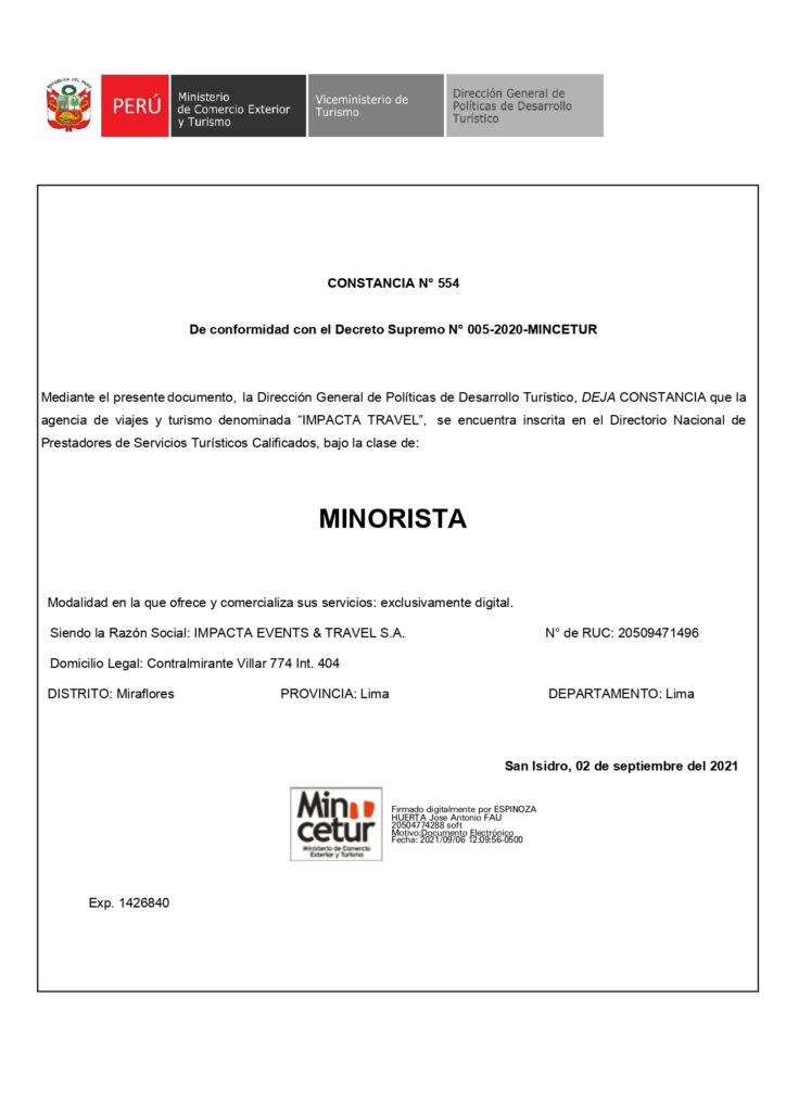 Constancia Agencia Viajes Digital- Mincetur